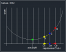Problem testowania zrobionego już oprogramowania jest niemal tak ważny jak samo oprogramowanie (jego funkcjonalność). Wczoraj poprawiałem właśnie sterowanie ręczne, formatowałem wyniki dla wartości L i C i zmieniłem sposób odczytu SWR przez jego pominięcie przy zmianie L lub C. Dziś robiąc testy dopasowania do różnych oporności obciążenia wykryłem błąd. L.J. Witam! Pora na najciekawszą cześć tego zadania a mianowicie algorytm wyszukiwania najlepszego dopasowania. Na początek kilka założeń: - do dyspozycji jest 8 wartości pojemności: 0, 10, 22, 47, 100, 250, 500 i 1000pF z których można można ułożyć łącznie 2^7 czyli 128 różnych wartości pojemności od 0 do 1929pF a najmniejszy krok to 10pF. - do dyspozycji jest 8 wartości indukcyjności: 0.16, 0.32, 0.64, 1.25, 2.5, 5.0 i 10uH z których można ułożyć łącznie 2^7 czyli 128 różnych wartości indukcyjności od 0 do 19,87uH a najmniejszy krok to 0.16uH. - do dyspozycji są dwie konfiguracje Lmatch: LC do dopasowania w górę i CL do dopasowania w dół względem impedancji domyślnej -> 50 (51) omów. - istnieje minimum SWR dla co najmniej jednej z kombinacji LC lub CL co nie oznacza jednocześnie, że to minimum będzie równe 1 (dla zbyt niskiej lub wysokiej częstotliwości lub zbyt małej lub dużej impedancji obciążenia) Przewiduję sprawdzenie dwóch metod szukania najlepszego ustawienia, które opiszę poniżej z czego jedną z nich zastosowałem już w oprogramowaniu, jak się wydaje z, wstępnie, dobrym wynikiem. A teraz kilka słów na temat ograniczeń. W tym wypadku podstawowym ograniczeniem są parametry przekaźników i czas. Zakłada się, że stabilizacja styków wymaga czasu ok. 20ms od momentu zadziałania przekaźnika. Użyte tu przekaźniki mają te czasy nieco lepsze ale do obliczeń założę właśnie 20ms. Ilość możliwych ustawień LC lub CL dla 128 wartości C i L to 128*128=16384 kombinacji. Najprostszą metodą sprawdzenia najlepszego ustawienia skrzynki byłoby przejrzenie wszystkich pomiarów i wybór tego, który jest najlepszy co wymaga ustawienia wszystkich możliwych kombinacji dla topologii LC i CL (nie znamy charakteru obciążenia) a czas jaki to zajmie wyniósłby co najmniej : 2*16384*20ms=655320ms czyli 655.36 sek (prawie 11 minut!). Sprawdzenie wszystkich kombinacji i wybór najlepszej należy do grupy metod "brutal force". Przy zdefiniowanej i skończonej liczbie pomiarów wynik jest pewny (najlepszy ze wszystkich możliwych) ale czas potrzebny do jego realizacji dyskryminuje go w zastosowaniach praktycznych. Dlatego jako pierwszą metodę jaką wprowadziłem do algorytmu jest metoda uproszczonego brutal force (Simplified Brutal Force - SBF -> moja inwencja nazewnicza). Algorytm SBF zakłada na początek sprawdzenie SWR dla wybranych wartości L i C oraz C i L a te wybrane wartości to właśnie wymienione na początku pojemności i indukcyjności użyte do montażu skrzynki. Schematycznie można pokazać siatkę wartości L i C na płaszczyźnie jako 8*8 = 64 punkty. Dla takiej siatki zaznaczyłem wartości pojemności i indukcyjności podstawowych oraz przypisane im w programie wartości portów sterujących binarnie i w nawiasach dziesiętnie. Czerwony punkt to hipotetycznie miejsce najlepszego dopasowania. Zakładając, że należy wykonać pomiary dla topologi LC jak i CL wymagane jest wykonanie 2*64=128 pomiarów w czasie 128*20ms=2560ms a więc nieco ponad 2.5 sek. Po takim teście uzyskuje się dwie informacje: która z topologii LC czy CL ma zastosowanie oraz pierwsze przybliżenie najlepszego SWR (dla podstawowych wartości z szeregu L i C). Kolejne wyszukiwana będą odbywać się dla tak ustalonej topologii LC lub CL. I właśnie dla ustalonej topologii oraz wstępnie określonych wartości L i C wykonuję drugi krok polegający na dokładniejszym przeszukaniu okolicy tych wartości (zarówno dla mniejszych jak i większych od nich) tak aby zakres przeszukiwań mniej więcej pokrywał się na brzegach z obszarami sąsiednich wartości podstawowych. I tu, w zależności od wybranych wstępnie L i C stosuję dodatkowe uproszczenie, nie przeszukuję wszystkich możliwych wartości ale w zależności od wartości wyjściowych L i C każdą, co drugą, co czwartą lub nawet co 16 wartość w ich otoczeniu. Zakładam przy tym ,że im większa wartość L lub C tym większe powinny być zmiany aby były zauważone przy obliczaniu SWR a poza tym rezonans (na jakim oparte jest dopasowanie LC/CL) zmienia się z pierwiastkiem iloczynu LC a więc zmiana 2 krotna częstotliwości rezonansu wymaga 4 krotnej zmiany L lub C. Na pokazanym rysunku czerwony punkt to umownie optimum dopasowania a zielone pole to obszar poszukiwań po ustaleniu w kroku pierwszym, że topologia to LC a ustalone wartości wstępne to 47pF i 2.5uH. W kroku drugim przeszukuję wybrany obszar dla C z krokiem 1 ale dla L już z krokiem 4. Gdyby w rzeczywistości minimum SWR było w miejscu oznaczonym czerwonym punktem wtedy zapewne algorytm znalazłby minimum dla 69pF i 3.62uH. Drugi krok wymaga wykonania 7*5=35 pomiarów w czasie ok. 700ms a więc łączny czas przeznaczony na przekaźniki to dla tego przypadku ok. 3.25s, Biorąc pod uwagę także czas obliczeń procesora, to łączny czas działania skrzynki można określić na ok. 4 sek a samo dopasowanie wydaje się być zadowalające. W najgorszym przypadku algorytm potrzebuje niewiele więcej czasu na najdłuższe wyszukiwanie najlepszego ustawienia. Teoretycznie można zastosować kolejny krok zawężając obszar poszukiwań i używając najmniejszych możliwych zmian ale na razie nie wydaje mi się to konieczne. Zastosowana topologia sprzętowa ułatwia programowanie. Zarówno pojemności jak i indukcyjności sterowane są z własnego, oddzielnego portu procesora w taki sposób, że najmniejszej wartości L i C przypisany jest bit 0 portu a największej bit 6. W ten sposób operacja shift rejestru portu w najtańszy (