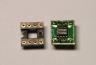 Ostatnie dwa zdjęcia pokazują sposób wykonania przejściówki SO8-DIL8 przydatnej do testowania wzmacniaczy SMD w układach homodyny. Przylutowanie układu SO8 wymaga użycia wąskiego grota lutownicy ponieważ miejsca jest bardzo mało. Zaletą tej wersji jest to, że układ mieści się w obrysie podstawki DIL8. Piny kontaktowe wyjąłem z listwy do łączenia płytek.