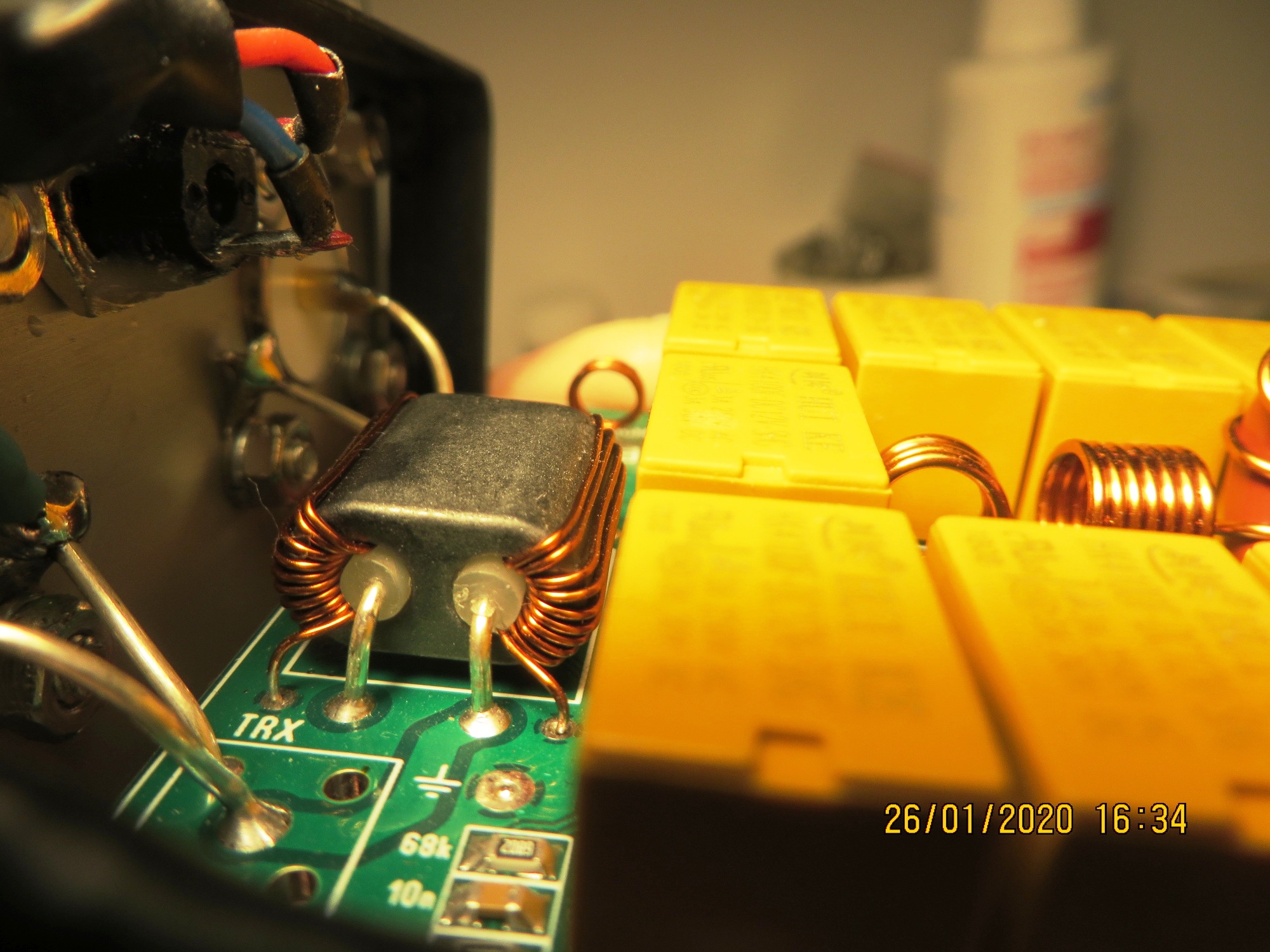 Moj bardzo mierny miernik RLC, pokazuje 110 +120 uH. Walka trwa, moze przyczyna tkwi w tym ze sprawdzam plytke na wiszaca, czyli podlaczone zasilanie i wej--> TRX wyj--> wersa tuner przelot --> antena carolina windom 40. Lub moze cos sknocilem w produkcji wlasnie mostka pomiarowego, pierwotne to rowne kawalki drutu fi 1mm, a wtorne 10 zw fi 0.3 moze 04 mm