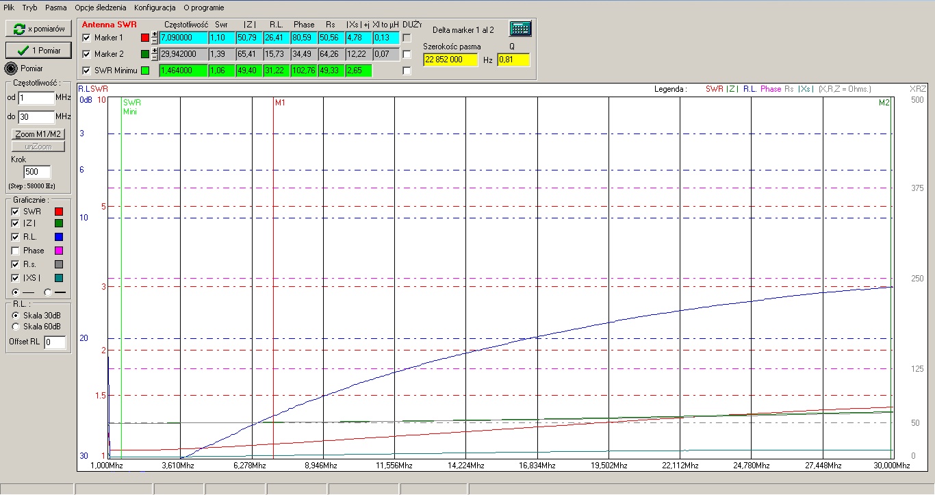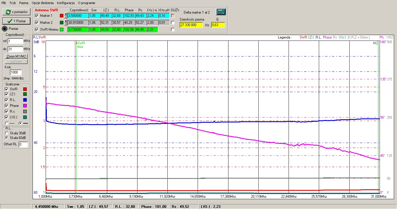 Tutaj widać pomiary wykonanego baluna. Uzyskane wyniki dalej mnie nie satysfakcjonowały. Tym bardziej, że np. Robert SP3RAF zbudował baluny o lepszych parametrach - są opisane na jego stronie WWW