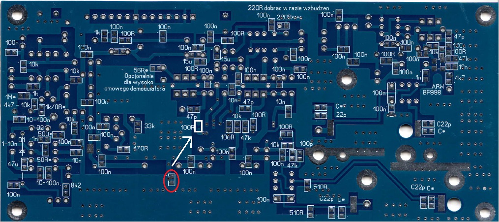 - samo ARW zachowuje się inaczej niż w wersji na 9MHz - tu nie wiem dlaczego ?, wrażenie jest takie jakby sygnał lepiej podlegał detekcji niż na 9Mhz i jak w wersji ARW na m.cz., kondensatory "filtrujące" w detektorze mają małe wartości (100nF smd i 560nF styroflex) a uzyskuje się na nich bardzo dobrą detekcję (czas podtrzymania i czystość sygnału ARW).