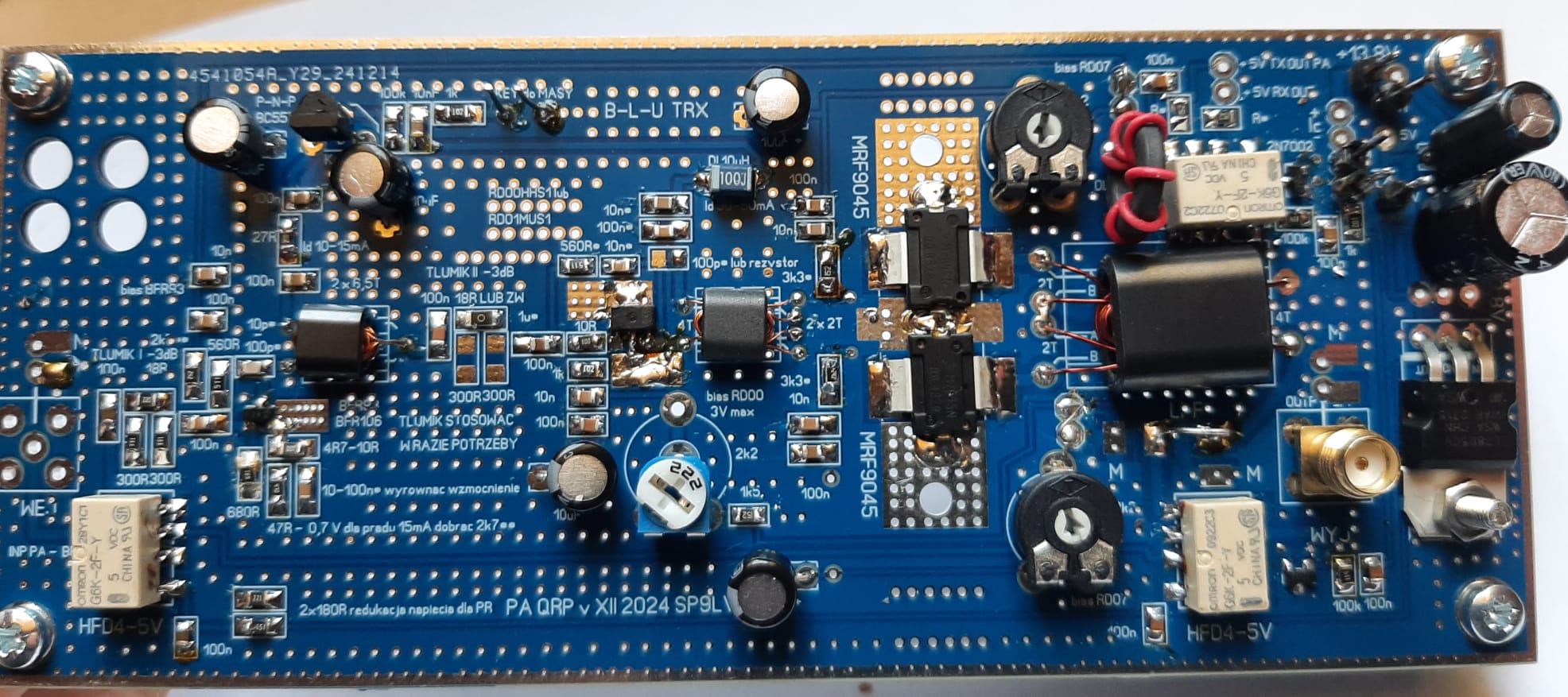Zrobiłem jeszcze jedną próbę spiąłem obie p.cz. w jedną ARW - tą z 500kHz, czyli "wyrzuciłem" aż cztery regulowane mosfety przed FEM. To to konfiguracja nie możliwa do realizacji... efekt był taki, że ARW z sygnałami do S9+10 dB pracowało o dziwo bardzo poprawnie, a nawet były akurat pojedyncze trzaski normalnie tłumione, dopiero bardzo silne sygnały zaczęły dawać negatywny efekt dławienia p.cz. Trudno powiedzieć czy z powodu opóźnień czy z powodu objęcia przez ARW aż sześciu mosfetów i problemów w związku z tym z regulacją ich. Jak by nie było taka konfiguracja jest niewłaściwa i nie ma sensu stosować, choćby ze względu na zbyt duże wzmocnienie (sześć mosfetów).
