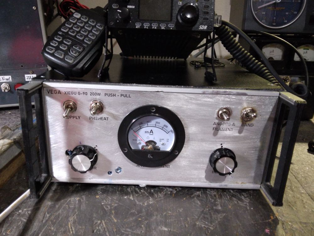 2a.W tzw międzyczasie przeprowadziłem próby polegające na podłączeniu dużego i wydajnego zasilacza używanego do zasilania innego wzmacniacza, dającego napięcie 1200V , oraz na sukcesywnym zwiększaniu wysterowania mocą aż do 50W dla emisji SSB. W efekcie uzyskałem moc wyjściową , szacowaną na 450W. Prąd katod przekraczał już 500mA.W trakcie prób , lampy były obserwowane , przy czym nie zauważyłem objawów przegrzania. Sygnał monitorowany był na odbiorniku SDR Płońsk , nie zaobserwowałem pogorszenia jego jakości .