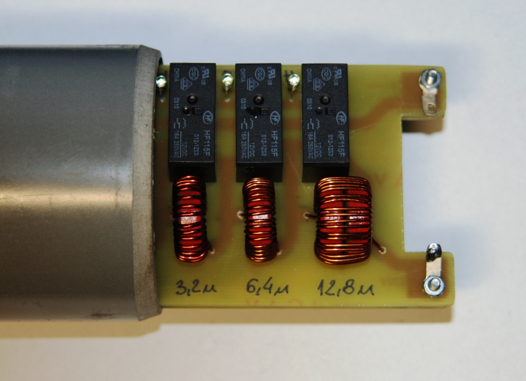 - nastawa indukcyjności 8 bitów (0.1, 0.2, 0.4, 0.8, 1.6, 3.2, 6.4, 12.8uH), stan spoczynkowy: wszystkie cewki zwarte